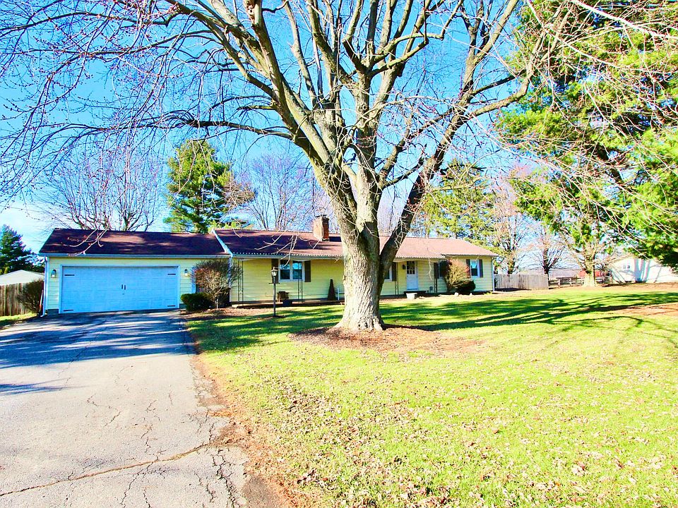Everything you need on the first level plus an additional 1200 sq ft added in 2023 in lower level including a half bath. Kitchen renovated in 2022 with new cabinets & granite counters & breakfast bar plus it is open to the living room with a gas fireplace. Stainless steel appliances are included. French doors lead to the private fenced backyard. One of the 2 full baths on the main level remodeled 2024. 2 car attached garage plus 1 car detached garage to store your yard equipment & toys. Almost 1 acre lot plus there is a patio for entertaining friends & family. You will love all the space in the lower level for gaming, or hobby or just a rec room. 4th br on LL located in Southern Marion county so quick access to Honda, Delaware & Columbus. Call now to see this wonderful home