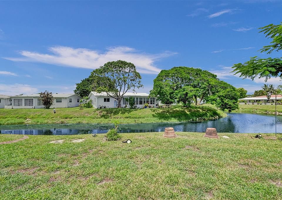 An Active 55+ Community with lots to do. LOW HOA Fee covers grass cutting, repainting exterior of homes every few years and amenities. PRICED TO SELL ! MOVE IN READY 2BR HOME on a LARGE PIE-SHAPED, WATER FRONT LOT. New waterproof wood floors, freshly painted interior, 2020 AC, 2023 WATER HEATER; OPEN LAOUT; LOW HOA FEES+++ SELLER MOTIVATED!