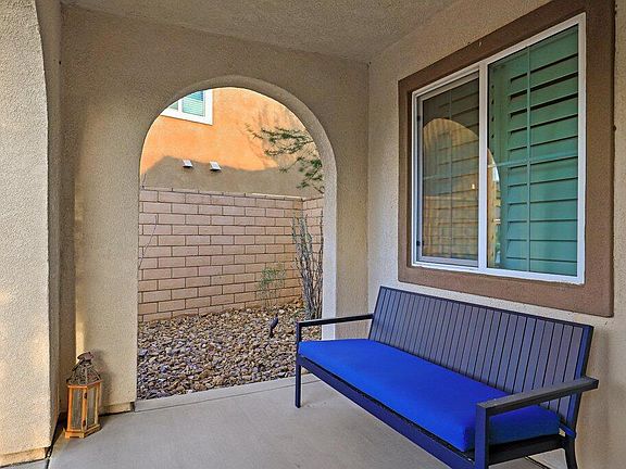 Stunning 3 bed/2 bath the 3rd bedroom is a flex room that can be an office or a bedroom. The home located in the desirable Verano community and features great curb appeal with a front covered porch to sit and enjoy your morning coffee, and drought tolerant landscaping. The interior offers a spacious floorplan, tile plank floors, plantation shutters, gorgeous crown molding and recessed lights. The kitchen offers formica counters and stainless steel appliances. The main bedroom has a private ensuite and massive walk-in closet. Enjoy the beautiful private backyard with pebbleTec pool, built in gas fire pit, covered patio, and grassy area. This community also offers amenities including a swimming pool, tennis courts, a playground, gym, and more!