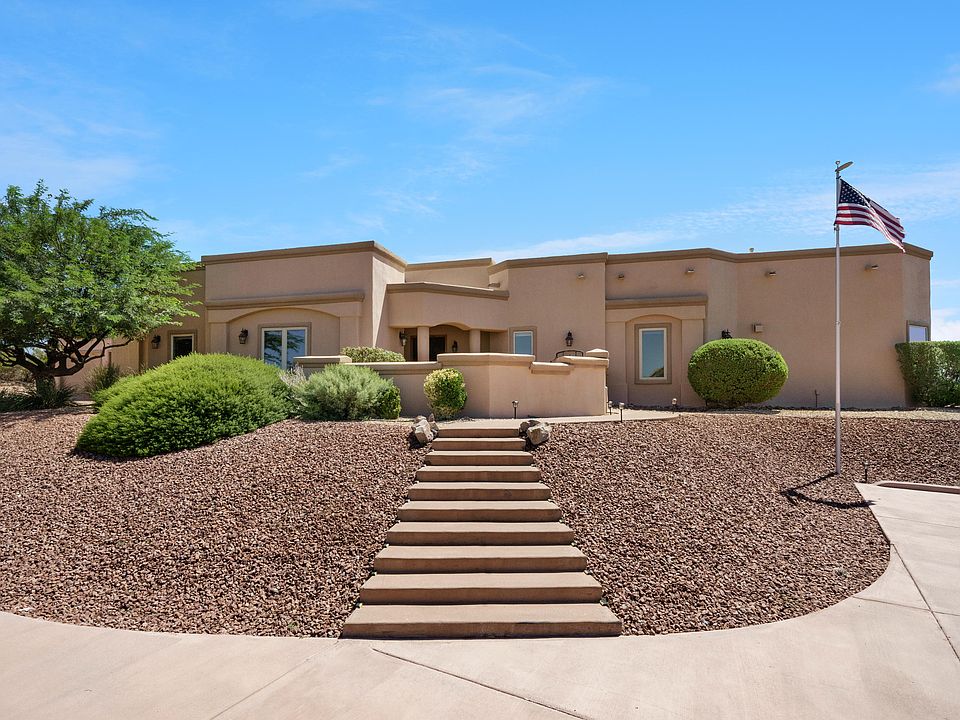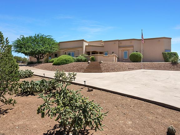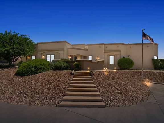 Stunning Hilltop Estate with sweeping views of the Mesilla Valley and Organ Mountains. This former showcase home features an open floor plan with 4BR + Office & 3 Full Baths. The Spacious living room flows nicely into a well equipped chef's kitchen outfitted with elegant custom cabinetry, and a large prep island with seating for guests. The living room/kitchen space is masterfully designed to capitalize on the panoramic views of the Organ Mountains and city lights. The luxurious owner's suite opens onto a separate covered patio, perfect for coffee & sunrises. The ensuite bath is outfitted with dual sinks, spacious walk in shower and relaxing soaking tub. The oversized 3 car garage includes a separate storage room or workshop. Additional features include: hardwood floors, vaulted ceilings, custom cabinetry, outdoor kitchen, multiple covered patios and plenty of space for adding a pool! This spectacular home is truly one of a kind! Call today to schedule your showing.