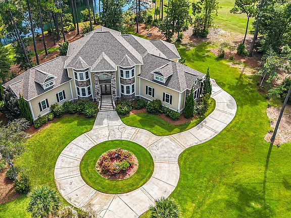 Welcome to 6576 Limerick Pl, located in Prestigious Ocean Ridge Plantation. This amazing property consists of 2 oversized lots totaling 1.18 ac with panoramic golf & water views from every window. You'll enter through double beveled glass doors and the high-ceilinged foyer to a sweeping 2 story great room, with stone fireplace and a recessed ceiling. Pass through the spacious great room through French doors to the Carolina room outfitted with 2 large ceiling fans & Eze breeze windows. The custom kitchen shows off a gorgeous, coffered ceiling, walk in pantry & custom cabinetry with elegant cornices. The front rooms include a formal dining room & office with custom built ins & bay windows in both. The spacious Primary bedroom has a bay window, ceiling fan & fireplace. The adjoining bath has custom vanities, jetted tub, and a large, low step, double entry tiled shower with side water jets, a rain head, and detachable shower sprayer. The closet is massive and contains custom built ins, its own linens closet and flows conveniently into a fully equipped laundry room. The second floor contains 3 bedrooms, generous closets, 2 bathrooms and 3 walk in attic storage areas. You must see the charming bar room Built to resemble a British Pub, it has timbered beams and flooring, and a built-in serving bar. Cheers! A hidden gem, just off of the kitchen, is Entertaiment central. Here you will find a 50's style Diner, complete with working Jukebox, 2 authentic booths and a soda fountain counter. All furniture and items, for this room, convey, unless otherwise specified. As you walk through the Diner, prepare to be impressed with the remarkable 10 seat theater room. The draperies, big screen, opulent ceiling,