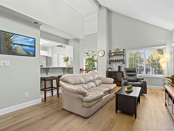 PRICE IMPROVEMENT! Welcome to this updated end unit, move-in-ready condo with RARE garage, in the sought-after Olde Mill community. This light-filled home offers a thoughtfully designed living space, featuring 2 spacious bedroom suites—each with a private bath—plus includes a garage w/ opener & keypad, and plentiful guest parking. Soaring vaulted ceilings, new flooring throughout the unit, new flooring on stairs, too...& a traditional staircase (no spiral staircase). This beautiful remodeled kitchen shines with stainless steel appliances, updated soft-close cabinetry, modern countertops, & a pantry. Convenient main-level laundry closet includes a stackable washer/dryer. The functional flow of the kitchen, family room & dining room, make entertaining a breeze. Just outside the dining area, you'll love relaxing on the private balcony or cozy up to the family room's fireplace. The main-level suite boasts an updated full bath w/ tub/shower combo, while the upper-level bedroom suite w/ updated bathroom ensuite, features its own balcony, and a versatile loft overlooking the living area (perfect for a home office). Upstairs also includes a private exterior entry—ideal for roommate accommodations. Relax by the cozy fireplace in the winter, or stay cool w/ newer central A/C (2020) in summer. Enjoy the community pool! Recent updates include: water heater(2022), central A/C, remodeled kitchen & bathrooms, newer stainless steel appliances, new window blinds, & beautiful LVP flooring throughout. A private storage closet sits right outside the front door. The HOA dues cover exterior maintenance, roofs, exterior of garage, trash, grounds maintenance & pool. Olde Mill offers an unbeatable location near award-winning Cherry Creek Schools, DTC, shopping, dining, I-25, Holly Park Pool & Tennis Center, trails, & Fiddler’s Green Amphitheater. Don’t miss this rare opportunity to own a bright, stylish, & low-maintenance condo in one of the area’s most desirable communities!