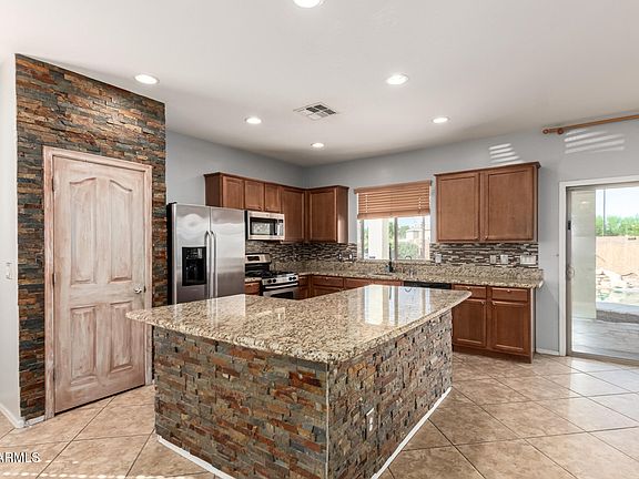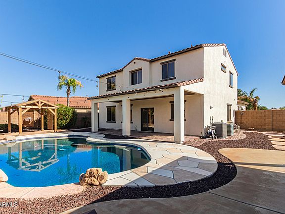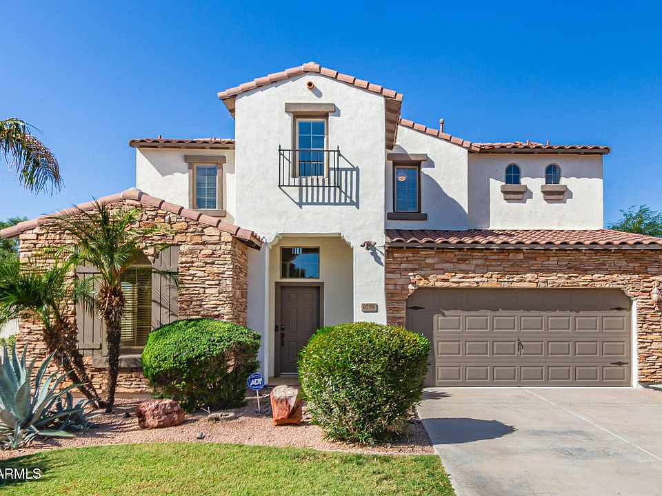 Beautiful home w/NO neighbors behind! Adorable curb appeal, stone-accented facade, & manicured landscape! A 2-car garage & RV gate add practicality. Thoughtfully designed L-shaped open layout featuring tile floors, soothing paint, & recessed lighting. A powder room & spacious den provide flexibility for work or relaxation! The kitchen boasts wood cabinets, pantry, SS appliances, mosaic backsplash, & L-shaped island w/breakfast bar. Upstairs, a laundry room includes cabinetry, while the nice-sized loft offers additional living space & can easily be converted into an extra bedroom! The main bedroom has a mirrored-door walk-in closet & a bathroom w/dual sinks, separate tub/shower, & modern finishes. Backyard oasis invites relaxation w/covered patio, sparkling pool, & two ramadas. Don't wait!