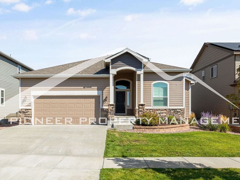 Welcome to this luxurious main floor living ranch-style home with finished basement. Nestled in the highly desirable master-planned Wolf Ranch community. Home features tall ceilings with recessed lighting, hardwood floors and custom plantation shutters throughout the main level. The kitchen provides granite countertops, stainless steel appliances, a gas range, large pantry, and a large island for countertop seating. Adjacent spaces include a charming breakfast nook and spacious living/family room centers around a stone-framed gas fireplace, creating a warm and inviting atmosphere for gatherings or quiet nights in. Just around the corner, you'll find formal dining or versatile office space too.