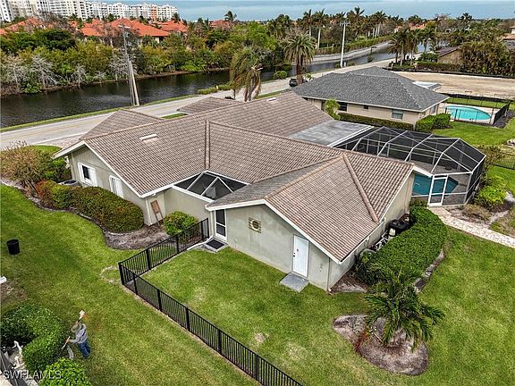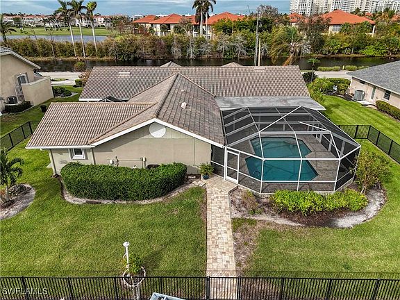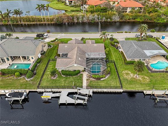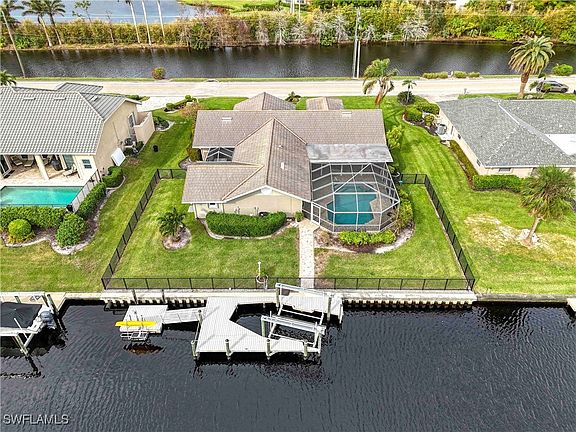 $150,000 PRICE REDUCTION ON BEST CANAL-FRONT RIVER ACCESS POOL HOME IN FT. MYERS. Less than 5 minutes to river. Single family home in south Ft. Myers, elegant 100’ frontage on 75' wide deepwater canal in quiet Palmetto Point. Park your boat directly behind your home on the 12,000 lb remote control lift with walk-around dock. Attached floating kayak dock with storage lift and retractable ladder. New erosion resistant sea wall across entire frontage. Dredged canal, 7' depth. Less than 5 minutes to Caloosahatchee River and on to gulf. Boat to 12 waterfront restaurants. Visit scenic barrier islands. Try casting off the dock to catch Snook, Sea Trout, Redfish, even an occasional Tarpon. Step up into the fenced back yard. Stroll past the multiple bird feeders and the large free-form heated pool. Long enough to swim laps. A deep end for diving. Underwater lighting system can change colors to give the pool a nighttime glow. Spacious lanai with fans, plenty of room to barbecue or just relax and absorb the canal view. Interior offers nearly 3000 sq ft of bright airy living space. East/west exposure allows sunlight to flow through the large family room and dining area. For evenings, there’s upgraded lighting throughout. Large wall spaces for your favorite art. Over-sized gourmet kitchen blends in seamlessly. Beautiful granite on the breakfast bar and acres of countertops. Pull-out drawers in cabinets. Center island with electricity. SubZero refrigerator with large freezer capacity. KitchenAid convection oven. Thermidor cooktop with retractable vent. Tile backsplash. Raised dishwasher saves bending. Store taller or bigger kitchen gadgets in oversized cupboard or large pantry. Kitchen recipe desk and built-in bar area with sink, wine cooler, mini-fridge and icemaker separate the kitchen from adjacent breakfast nook. Bedrooms are in two separate wings, straddling the living area. Guest wing has large bedroom with ensuite bath, walk-in closet sliders out to the lanai and pool. Two other bedrooms and additional bath. Ideal spot for an office or exercise room. Luxury plank tile throughout, including closets. The primary bedroom wing is a fabulous hideaway. Huge open environment with ceramic tile, vaulted ceilings and door to the pool. Giant closet with central island, customized shelving. Small extra room off closet for office or more storage space. Has door to outside. Bath has raised comfort level cabinets, under counter lighting, twin sinks and make up desk. Shower tiled floor to ceiling. Steps away there’s a unique courtyard sunroom. Totally surrounded for privacy with screened cage roof to welcome in the sun. Includes heated above ground spa. Plantation shutters throughout. 2 A/C units. Water filtration system. Monitored fire and security on doors and windows. Impact glass and hurricane shutters on all windows and cut glass double entry front door. Easy access to SWFL Intl Airport, Twins and Red Sox stadiums. VOLUNTARY HOA. NO DOCKAGE FEE.