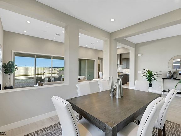 Unparalleled luxury with this BRAND NEW, NEVER LIVED IN single story home in a cul de sac. Enjoy breathtaking views of the Strip & mountains through massive stackable glass doors, seamlessly merging indoor & outdoor living. The kitchen is a culinary haven, featuring top-of-the-line JennAir appliances, upgraded cabinets, quartz & granite countertops. The open layout effortlessly connects the kitchen, dining area, & living room, enhancing the sense of connectivity. The primary suite offers a sanctuary with an ensuite bathroom, oversized zero threshold walk-in shower, & dual sinks. The 2nd bedroom provides ample space and stunning mountain views. Beyond your door, Regency community awaits, offering a range of amenities. Notable features include a $29k multi-slide bi-part 24’ glass door, insulated garage, tankless water heater, and a $20k Primo 72” fireplace, wired for ceiling fans in primary & backyard. Keyless entry, a $45k lot premium & EV charging complete this luxurious package.