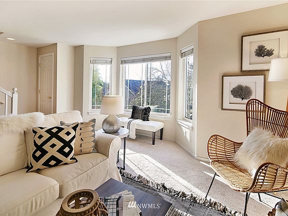 Unexpected elegance & space, abundant light, intelligently appointed, a step apart. Hidden from the street and traffic this home has a big Western outlook and beautiful territorial views to the Olympics and all of Loyal Heights. Very private setting with a King sized primary bedroom and additional bedroom and full bath on the upper floor. Exceptionally well maintained and brand new carpet and paint. 79 Walk Score-across the street from Mabel Coffee and a quick jaunt north to Larsen's, Cafe Munir, Fresh Fish Co, Beast and Cleaver or head downhill to Copine, Rupee Bar, Cafe Besalu & all that makes Ballard, Ballard. A wonderful place to call home.