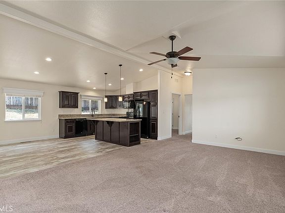 Step inside to an inviting open floor plan with vaulted ceilings, creating a spacious and airy feel. The beautiful kitchen features a central island with a breakfast bar, ample cabinet space, and plenty of natural light—ideal for both daily living and entertaining.