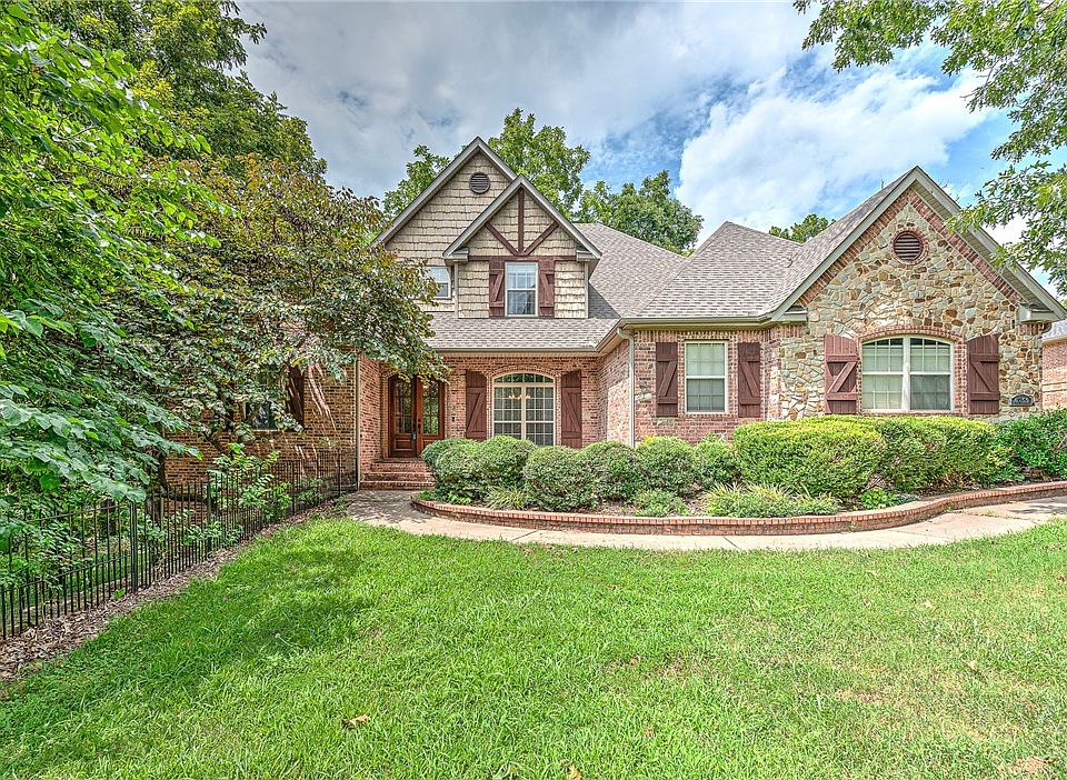 Welcome to your private retreat in the middle of it all! This stunning home sits on nearly 2 acres and offers the perfect combination of space, comfort, and thoughtful upgrades. Inside, you’ll find 5 spacious bedrooms each with walk-in closets in 4 bedrooms. A basement bedroom includes a private exterior access—great for guests, extended family, or extra privacy. The main level impresses with two inviting living areas, a formal dining room, home office, and a kitchen that shines with brand-new quartz countertops and abundant cabinetry. You’ll love the new wood flooring adding a fresh feel to every space. Step outside to the newly extended deck—perfect for morning coffee or evening gatherings—and enjoy movie nights in your very own home theater room. With high ceilings, generous storage, and a location that puts you minutes from everything in NWA, this home checks every box. Seller is offering a one year 2-10 Warranty. Property is being sold "As Is".