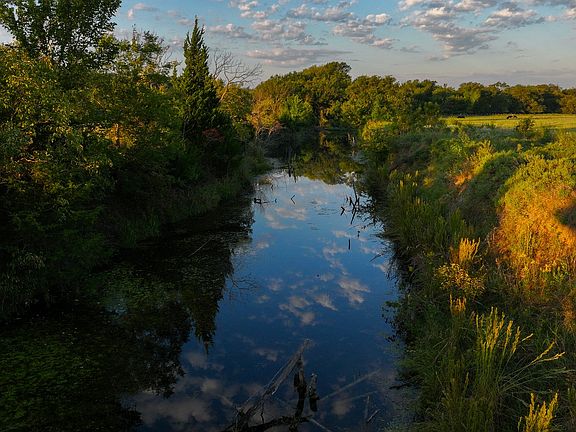 There is gently rolling topography with approximately 100 feet of elevation change, providing function and visual appeal. Excellent grass cover, 100% improved Coastal Bermuda, supports strong grazing and hay production potential. A wooded seasonal creek winds through the property, shaded by large post oak and native pecan trees, and holds water year-round in several stretches. Four ponds are strategically located throughout the ranch, ensuring water sources for livestock and native wildlife.