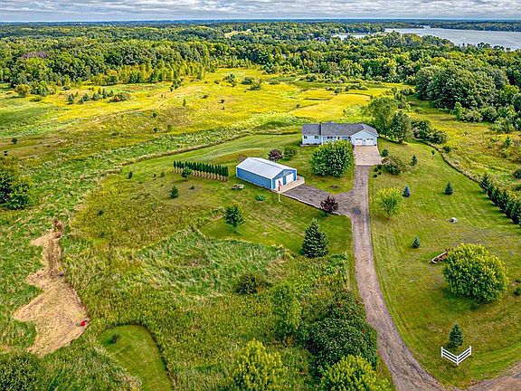 The best of all worlds! Ever heard of a Country Cul De Sac? It's where you have a couple neighbors to wave at when you are coming home, need a cup of sugar..or want to shout out to come sit and watch the sun go down while enjoying a cool drink on the porch. They're pretty far away, but close when it counts. It's Country Comfortable for those who don't quite want to be out in the wilderness with the lions and tigers and bears..but also want the peace and serenity of walking onto your back deck and not seeing a soul for miles..except the deer, the turkey and the unobstructed views...Home. An unusual property that gives you both..but this can't last forever. Are you ready to make the move? . Three rear decks, two concrete patios (one off the 30x48 pole barn) and an attached 30x30 garage. Inside the wide open feel to the home is accentuated by the sunrooms streaming light into the dining area and living room. The energy efficient corn stove stays. Beautiful hardwood floors seamlessly tie the great room to the kitchen which gleams with new stainless appliances and contrasting black and white counters and cabinetry. Home is wired for sound. Zoned in-floor heat in the lower level, the full walkout basement is framed for two more rooms, septic is sized for another bedroom so make it what you will. Easily made into a private second unit for friends or family..or a huge entertainment room with the bar already in place. The pole barn has a concrete floor and dedicated electric service. See the attached feature sheet or just make your appointment and get ready to close before the fall colors astound the eyes. Commute is about an hour and 10-15 to downtown metros..park n' ride share locations in Cambridge and Harris.