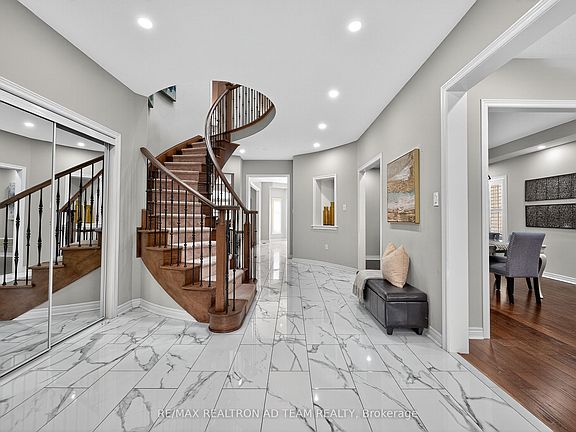 Absolutely Stunning John Boddy Grand Prescott Model In The Highly Sought-After Eagle Woods Community! This All-Brick And Stone Detached Home Boasts An Impressive 3,778 Sq Ft Of Above-Ground Living Space With 5 Bedrooms And 5 Bathrooms, Ideal For Large Or Multigenerational Families With A Convenient Separate Walk-Up Entrance. Step Inside Through The Grand Double Door Entry To A Bright, Open-Concept Layout Featuring 9-Ft Ceilings, Hardwood Floors And Upgraded Tiles. The Main Floor Offers A Private Office, Elegant Dining Area With Coffered Ceiling, And A Spacious Family Room With Fireplace. The Fully Upgraded Kitchen Showcases An Entertainers Island With Breakfast Bar, Quartz Counters, Custom Backsplash, Ample Cabinetry, And Top-Of-The-Line Frigidaire Professional Appliances Including A Double-Door Fridge, Gas Cooktop, And Double Wall Ovens. Walk Out From The Breakfast Area To A Partially Interlocked BackyardPerfect For Hosting. The Oak Staircase With Iron Pickets Leads To A Wide Hallway Illuminated By A Skylight. The Large Primary Retreat Features A Huge Walk-In Closet And Luxurious 5-Piece Ensuite. All Bedrooms Are Generously Sized And Each Has Access To Its Own Ensuite Or Jack & Jill Bath, With 4 Full Bathrooms On The Upper Level. Additional Highlights Include California Shutters Throughout, Second-Floor Laundry, Upgraded Powder Room, Interior/Exterior Pot Lights, Interlock Driveway, And Interior Garage Access. Enjoy Being Steps To The Lake, Trails, Parks & Transit, And Minutes To Schools, Shopping, GO Station, Hwy 401, And Hospital. This Is Luxury Living At Its Finest! **EXTRAS** B/I Gas Stove, S/S Range Hood, B/I Double Oven, B/I Stainless Steel Dishwasher, B/I Stainless Steel Fridge, Washer And Dryer, Central AC And California Shutters. HWT Is Rental