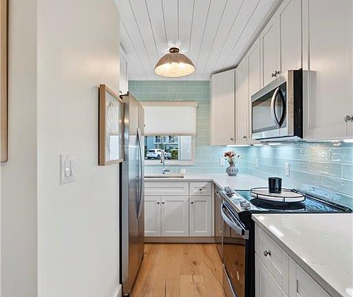 Welcome to the move-in ready 676 Broad Ave S #J676 in the highly sought-after Jasmine Club in Naples, Florida! This stunning, TURNKEY, completely renovated condo boasts European oak hardwood floors throughout, paired with bead board ceilings that exude a charming and sophisticated ambiance. The bathroom features mosaic tile floors and Akua Pastel Snow walls, creating a spa-like atmosphere. The kitchen showcases Teroso Aqua backsplash and sleek quartz countertops, complemented by brand new stainless steel appliances, all covered under warranty. Both bedrooms are fitted with Monterey Plantation Shutters, while the living room is equipped with solar shades, remote-controlled for convenience, and shades in the kitchen. The condo is updated with new electrical and plumbing systems, solid wood doors, and a thoughtfully designed owner's closet. All closets throughout the unit have been custom-designed by California Closets, offering ample storage space. Enjoy luxurious walk-in showers with grab bars for added safety, and take advantage of the in-unit Bosch washer and dryer, also covered under warranty. The condo is equipped with top-of-the-line ceiling fans and a brand new water heater, ensuring comfort throughout. For accessibility, there is a portable ramp for easy entry with a wheelchair or scooter. The condo also boasts hurricane windows and doors for peace of mind during storm season. No one has lived in this pristine, fully renovated unit since the work was completed, making it a wonderful move-in ready home.