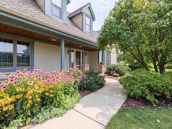 The peaceful and pastural setting of this meticulous country cape is sure to please. Covered front porch made of composite decking welcomes guests. Great room with vaulted ceiling has a natural fireplace with gas starter perfect for Wisconsin winter. Large, fully applianced kitchen with granite counters and super sized center island that will please any chef. Main floor private office makes working from home quiet and efficient. Upstairs find three large, light, and airy bedrooms. The master suite has large dressing room and en suite bath that has been recently updated. The lower level family room features egress window and half bathroom. Large composite deck in the fenced backyard where you can sit and watch the wildlife. Easy access to I43 for commuting. End your quest for the best!