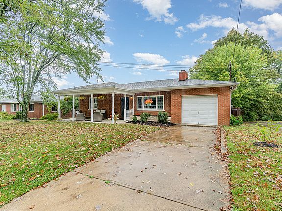 Charming brick home in Taylor Mill featuring a one-car garage, concrete driveway, and a welcoming front porch shaded by mature trees. Inside, hardwood floors flow through out the home, highlighted by a cozy fireplace in the living area. The kitchen impresses with quartz countertops, stainless steel appliances, a farm sink, and a large island with seating. The primary and second bedroom offers hardwood floors and abundant natural light. A tiled three-piece bath completes the main level. The spacious basement includes concrete flooring, laundry area with washer and dryer, and a walkout to the backyard. Newer HVAC Furnace and Air Condidtion for your convenience. Your outdoor living area shines with a large deck perfect for entertaining, above-ground pool, fire pit, and raised garden bed. The fully fenced yard with mature trees offers privacy and space to enjoy every season.