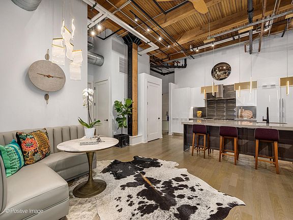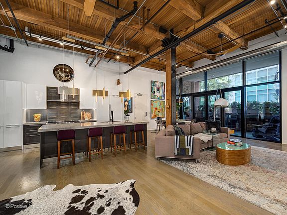 Experience elevated loft living at The Ronsley, one of River North's most sought-after luxury residences. This exceptional 3-bedroom, 3-bathroom home offers a perfect blend of industrial and modern feel, featuring soaring 15-foot timber ceilings, exposed brick, floor-to-ceiling windows, hardwood floors, custom lighting and automatic shades throughout. The open concept living and dining area is filled with natural light and anchored by a custom media wall, seamlessly flowing to a spacious private terrace. The chef's kitchen is outfitted with top-of-the-line Wolf appliances, a large island with polished quartz countertops, custom cabinetry, beverage refrigerator, pantry, and a custom designed built-in breakfast nook. A desirable split-bedroom floor plan offers convenience with each bedroom featuring a full en-suite bath. The luxurious primary suite includes oversized windows with blackout shades, a walk-in closet, and a spa-inspired bath with a steam shower, soaking tub, dual vanities, and updated mirrors. The generously sized second and third bedrooms each offer ample closet space and beautifully appointed en-suite baths. Additional features include a spacious laundry room with side-by-side washer/dryer, utility sink, and extensive cabinetry. The Ronsley is a full amenity building offering 24-hour door staff, fitness center, yoga room, resident lounge, an expansive landscaped courtyard with grilling stations, fire pit, and lounge seating and a private dog run. Ideally located near Montgomery Ward Park, the Chicago Riverwalk, Larrabee dog park, Health/Wellness Clubs such as East Bank Club and Bian, Target, groceries, top dining, nightlife, shopping, public transit and highway access. Price includes a premium deeded garage parking space with a lift accommodating two vehicles.