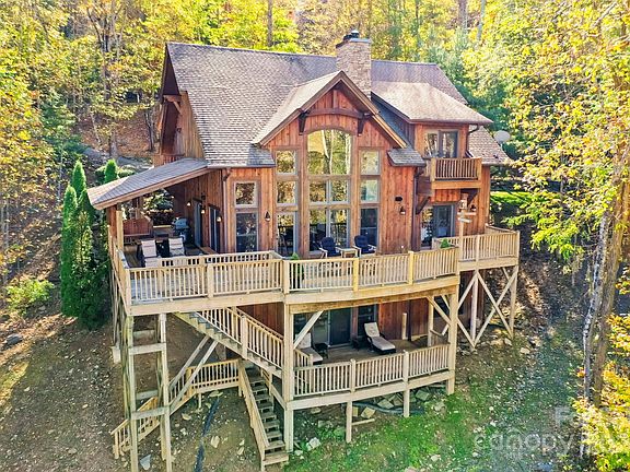 Nestled in Valle Crucis, this beautifully crafted mountain home blends luxury, natural beauty, and coveted long-range views. This exquisite property features an open floor plan on the main level, seamlessly connecting the huge gourmet kitchen, elegant dining area and the large great room with CTH ceilings. A 24' stacked stone, wood- burning fireplace creates a perfect space for entertaining and relaxation. High-end finishes and furnishings throughout elevate the space while breath-taking views create a tranquil backdrop. The main level also features a luxurious master suite with an en-suite bathroom and a second stone fireplace (gas); a half bath; and laundry room. The second level welcomes your guests with two bedrooms, a shared bathroom, and a loft sitting area perfectly positioned to take in the beautiful mountain views. The lower level offers a family/game room. Home comes fully furnished with a few exceptions. Outdoor living with decks/balconies at every level. Move-in ready!