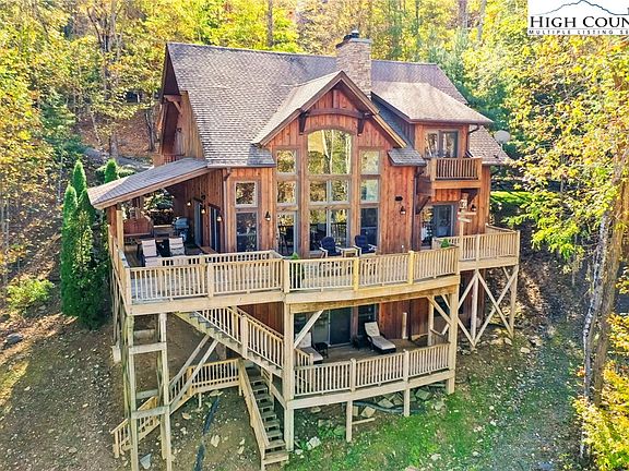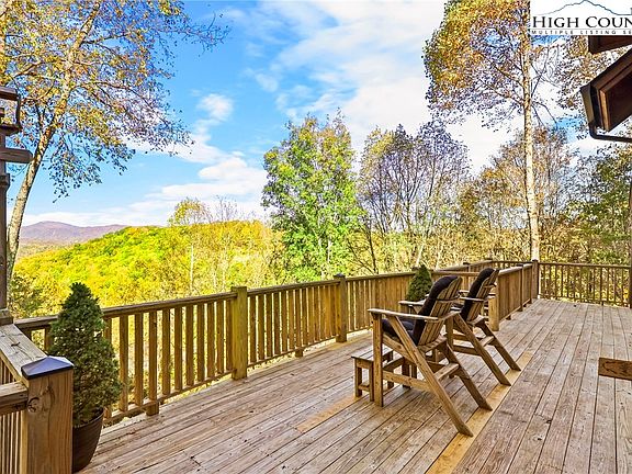 Nestled in a quiet neighborhood in Valle Crucis, this beautifully crafted, one-of-a-kind mountain home in Hunters Ridge blends luxury, natural beauty, and coveted long-range views. This exquisite property features an open floor plan on the main level, seamlessly connecting the huge gourmet kitchen, the elegant dining area, and the large great room with cathedral ceilings. A gorgeous 24 ft. stacked stone, wood-burning fireplace creates a perfect space for entertaining and relaxation. High-end finishes and furnishings throughout elevate the space, while expansive, breath-taking views create a tranquil backdrop. The main level also features a luxurious master suite with an en-suite bathroom and a second stone fireplace (gas); another half bath; and a laundry room. The second level welcomes your guests with two bedrooms (one currently used as an office), a shared bathroom, and a loft sitting area perfectly positioned to take in the beautiful mountain views (the loft includes a pull-out couch for extra sleeping space). The lower level offers a spacious family room/game room that comes complete with a Beatles pinball machine and a Skee-Ball home arcade machine. Enjoy outdoor living at its finest with about 1500 sq. feet of decks/balconies at every level, providing great space options for entertaining or for quietly enjoying the stunning surroundings. Current owner improvements/updates include: a new heat pump unit/central AC; basement humidifier; refinished hardwoods; newly stained exterior and interior paint; newly finished basement; a new fire-pit area; and tree removal to enhance the already spectacular views. This home comes fully furnished, with a few exceptions. Roads from Clarks Creek are under construction; pavement is expected to be finished by Spring of 2026 (due to Helene the roads are currently rough, grading projected to be completed winter 2025). Non-smoking home and it has never been rented. This beautiful home is move-in ready. Just bring your toothbrush!