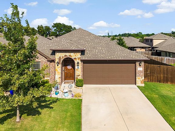 LARGE LOT WITH CUSTOM COVERED PATIO! Must-See Home with Backyard Retreat on Cul-de-Sac Lot! Welcome to this beautifully maintained brick and stone home, ideally situated on a spacious 0.218-acre cul-de-sac lot in a thriving community within sought-after Community ISD—home of the Braves! Enjoy your own outdoor oasis with a EAST-facing extended covered patio, perfect for evening entertaining Outfitted with charming twinkle lights, a mounted outdoor TV, and a cozy fire pit area, it’s the ultimate game day or relaxation spot. The oversized driveway accommodates up to 8 cars—ideal for guests or multi-vehicle households. Step inside to an inviting open-concept floorplan featuring a gourmet kitchen with granite countertops, upgraded tile backsplash, modern cabinetry, commercial-grade vent hood, stainless steel appliances, and a spacious walk-in pantry. The kitchen island provides plenty of seating and seamlessly flows into the bright and airy living room, which easily fits large furniture and is filled with natural light.The expansive primary suite offers enough space for a private sitting area, along with a large walk-in closet, dual vanities,and a luxurious oversized walk-in shower. The three additional bedrooms are equally charming—one of which makes a perfect home office or guest room. Additional features include a full sprinkler system, separate fenced dog pen in backyard, a separate laundry room with drip dry pole, rain gutters, and thoughtful upgrades throughout. Enjoy access to top-tier neighborhood amenities including a 300-gallon resort-style pool, additional pools, fitness center, playgrounds, and more!