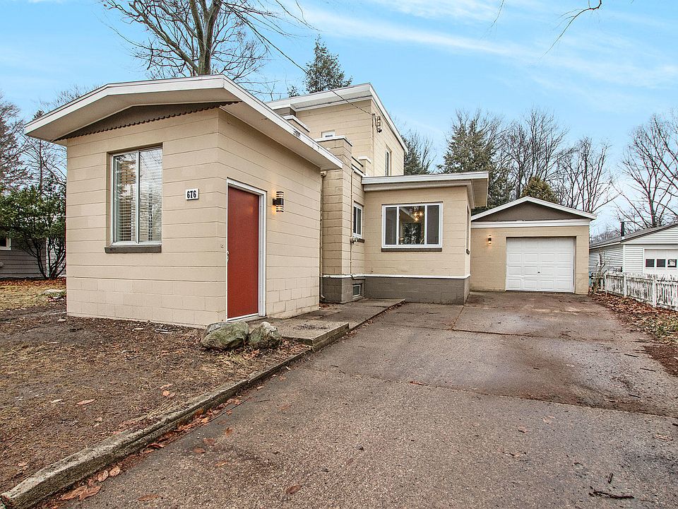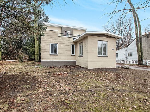 Mid Century Modern home in Mona Shores Schools! This 3 bedroom 2 1/2 bath home has been completely updated and is ready for a new owner. Modern kitchen with sleek cabinets and stainless steel appliances opens to a bright and cheery breakfast nook. Unique beams in the living/dining area highlight the style of this one of a kind home. Main floor master bedroom hosts an full bathroom with tile floors and tile shower. A front foyer and half bath complete the main floor. The second floor offers two bedrooms and a second full bathroom with modern finishes and a tile shower. The hallway leads out to a second floor balcony! Enjoy the wooded back yard from the two-tiered deck! Two stall tandem garage and full basement for storage. Updates include new windows, doors, flooring, vanities and plumbing fixtures, and interior and exterior paint. This home is a must see!