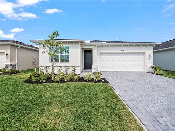 Discover the perfect blend of style, comfort, and location in this stunning single-story home, built in 2023 and ideally situated near St. John Heritage Parkway. This contemporary residence offers sleek design and premium features, making it a standout choice for modern living. Natural light streams through high ceilings and impact-resistant windows, creating an inviting and bright atmosphere. The open-concept layout includes a spacious Great Room that seamlessly flows into the state-of-the-art kitchen, making it perfect for entertaining or family gatherings. Sliding glass doors lead to a covered patio, an ideal spot for outdoor relaxation or hosting guests. Located just over an hour from Orlando's world-famous theme parks, this home also boasts proximity to excellent shopping options and a fantastic park nearby, offering a peaceful retreat for outdoor activities, leisurely strolls, or family fun. Whether you're seeking excitement or tranquility, this home places it all within reach.