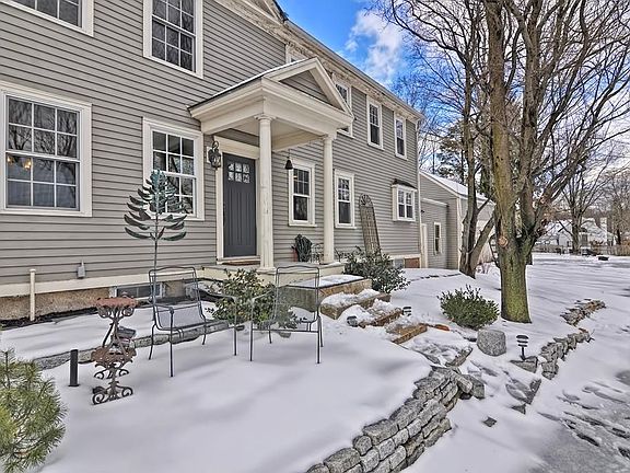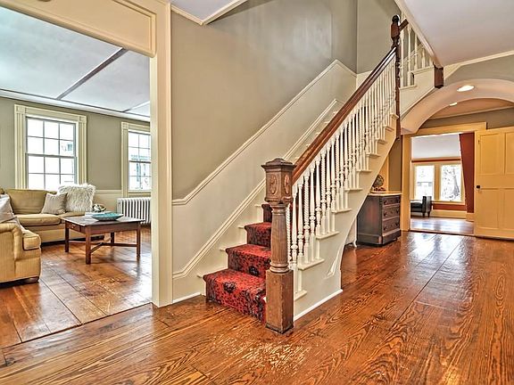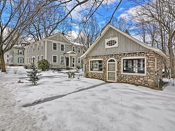 This gracious home is located in Holliston's bucolic town center, and offers its next steward the opportunity to own a piece of history. Upon entering the grand foyer, this home's integration of the old and new welcome you. Spacious remodeled kitchen features gas cooking, limestone counters, stainless appliances, pantry & lovely built-ins; beautiful family room with gas fireplace, built-ins, and access to the huge flat backyard; gracious living and dining rooms in the front of the home feature wood flooring, moldings, a fireplace and built-ins. Ascend upstairs by either the front or back staircases, and find the generously sized bedrooms, including the lovely fireplaced master. The stone house offers so many possibilities, adding charm and intrigue to this special property. Practical updates include newer septic (2008); all windows; central AC w/in last 5 yrs; exterior resided in last 10 yrs; oversized 2 car garage w/loft. Walk to rail trail, parks, cafes, schools, shops & library.
