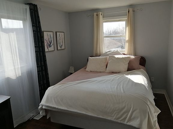 AVAILABLE TO FEMALE ROOMMATE JUNE 1: Per person $800, reduced from $900, this house includes utilities and internet! Last of three bedrooms left. Close to Western University and Fanshawe College, short bus routes, Oxford and Adelaide Street intersection. Looking for respectful, clean female roommate with no pets to share an updated house now for a minimum 3 to 10 months. Main level has dining area with gas fireplace, bright kitchen with fridge, stove, dishwasher and microwave. Living room, 1 washroom, and private laundry all on main level with tile flooring. Available upstairs are one large bedroom (approximately 20' long) and large hall area. All upstairs has laminate flooring. You will be sharing the common areas of the house with two female women about 30 years old. Central heat and air-conditioner, and additional air conditioner provided for upstairs, if requested. This is the back 3-bedroom unit of a duplex with limited parking. No green space, but has a fenced patio area. Located in the Woodfield area of London, 10-minute walk to Victoria Park and Downtown London. Maximum adults including you are three; I will be requiring all bedrooms in Spring of 2026 therefore lease is shorter than 1 year, and renewal after March 2026 must be renegotiated. First and last month rent deposit and references required. Students require guarantor signing. Renter is responsible for respectful utility usage including water, heat and hydro, expected to be maintained at the averaged costs from previous tenants, i.e. reasonable heating and cooling temperatures, no open windows when heating or air-conditioning, being respectful with water usage, as it is included in rent. Snow removal, sidewalk, driveway, garbage and patio cleaning to be maintained by tenant.