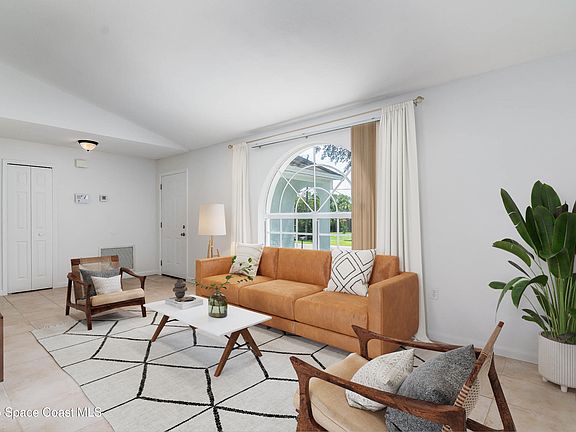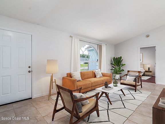 No HOA! Your private sanctuary awaits in this beautifully updated 4-bed, 2-bath home. Nestled in a quiet, tree-lined neighborhood, this move-in-ready gem offers the perfect blend of comfort and freedom. Inside, a bright, open living space with soaring vaulted ceilings and gleaming tile floors welcomes you. The remodeled kitchen features crisp white cabinets, a center island, and a breakfast nook with sliding glass doors to a peaceful backyard. The primary suite is a true retreat, boasting an updated en-suite bathroom and a walk-in closet. Freshly painted inside and out. Enjoy complete peace of mind with a brand-new, whole-house plumbing system and a newly installed septic system, ensuring worry-free living. The spacious yard offers ample privacy, perfect for relaxing or entertaining. Conveniently located near shopping, dining, and parks, with an easy commute to Orlando, the beaches, and Kennedy Space Center. Step into the lifestyle you've been envisioning—comfortable and calm.