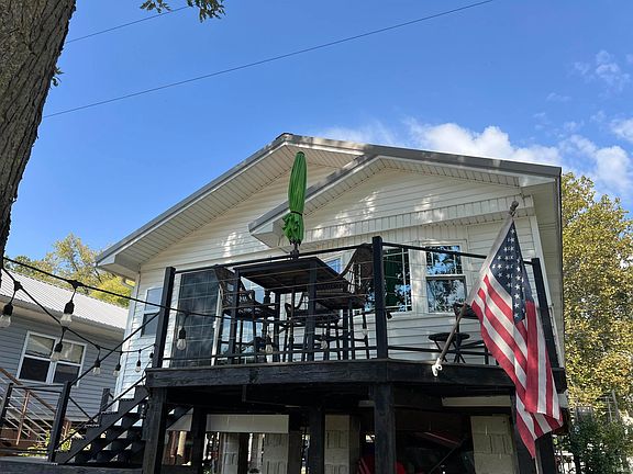ABSOLUTELY PERFECT little getaway right on the water with a 40' seawall and every day access to whatever water sport you desire!! Come dip your toes in the sand right in your back yard!!! This home is VERY WELL maintained with NEW vinyl flooring in 2024, NEW windows in 2023, MODERN CURB APPEAL, composite wrap around deck installed in 2022 including an ELEVATOR LIFT for ease of bringing items (or yourself) up to the main level!!! No HOA!!! Inside are 3 bedrooms, a great living area and kitchen as well as an added addition used as a flex family room or dining area with unobstructed views of the water!!!! Only a 20 minute boat ride from Indiana Beach!! Enjoy multiple hang out spots along the river to stop and soak up the sun, play volleyball, visit with friends and float your day away!!!