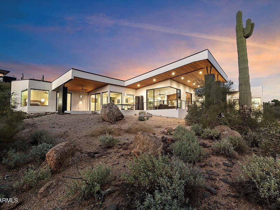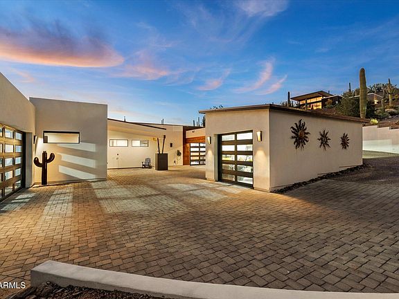 They say there is a magnetism associated with Black Mountain. People are drawn to it. I've felt it and you will too. When in this Luxurious Home you feel a part of it. Enjoy the peace of the Mountain, yet only a 10 to 15-minute walk to all that is Cave Creek! Just 2 years old, the house opens up to the Mountain with Gorgeous Sunsets and Views! Four Bedrooms w/ensuite Baths plus a Half Bath. Three Garages with a total of 4 Spaces for your Collector Cars and/or toys plus a 4 Vehicle Carport! There is great potential for a Resort Style Pool and plenty of room on the property to add more Garages! Did I mention Solar?