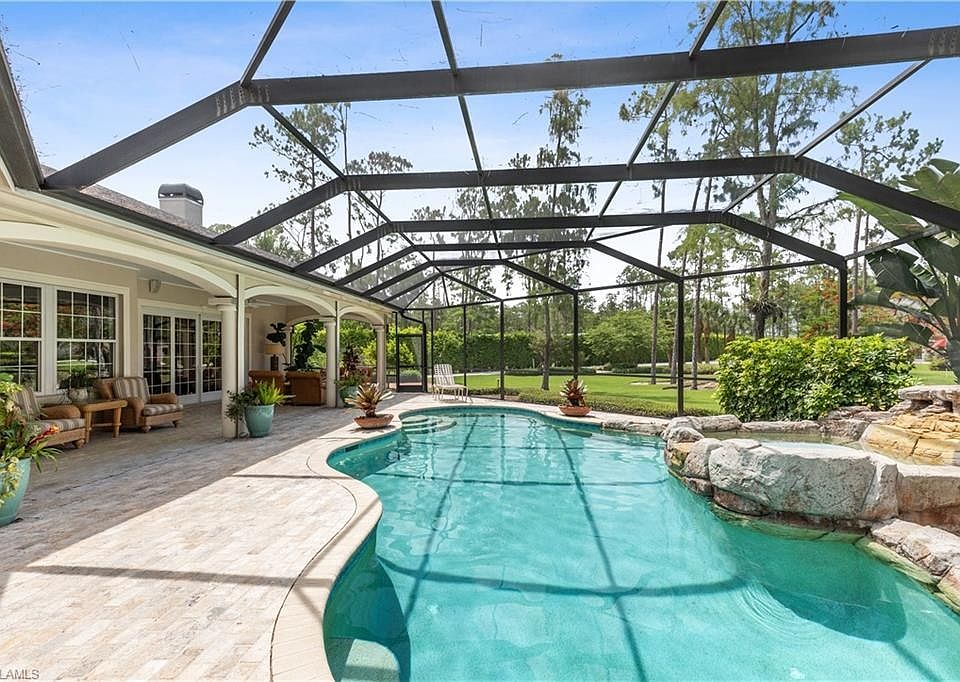 Breathtaking Estate Home located in Livingston woods Naples, this incredible estate consists of a grand main home and also a beautiful multi-use building at the rear, all this on almost 2.5 acres of stunning landscaping, yet only minutes to the Gulf, Shopping and many Restaurants! exceptional detail in this 2000-built residence, with the addition of a guest house and many extras from 2008. Main house comprises of two-story foyer, formal living room with french doors leading to pool area with exceptional garden views. Formal dining room, family room with vaulted ceiling and gas fireplace opens to an amazing kitchen area. this home also has it`s own "Pub", five bedrooms and 5 full baths. the pool/spa sits adjacent to an open-air patio/outdoor grill, garage with workshop area.Landscaping, beautifully lit covers the fenced and gated property. The guest house has a four-bay garage with movie theatre, full bath and office on first floor, the upstairs houses a personal gym. Along with whole-house generator, water filtration system, two wells, two septic systems, storm protections. In-ground gas tank fuels range, fireplace and pool heater, this estate is quite magnificent