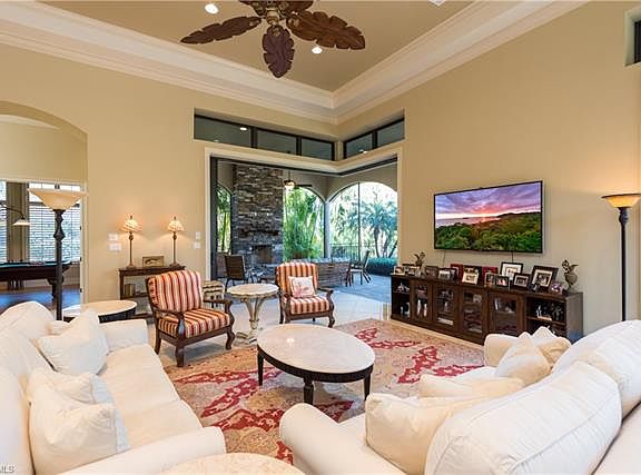 Nested on a secluded 2.5 acre lot, minutes away from the beach and everything Naples has to offer, this will be your very own Private Resort Residence! The Estate is an entertainer's dream & is sure to impress from the moment you walk through the front doors. Framing the formal dinning & living rooms are floor to ceiling windows overlooking your private oasis. The outdoor living room has two siting areas, TVs & a stunning stacked stone fireplace. Adjacent to it is a full outdoor kitchen, which will allow your to enjoy the indoor and outdoor lifestyle to its fullest. The kitchen, although not visible from the formal areas, is the heart of your family's casual living areas! The master bedroom quarters leave nothing to be desired. With its own foyer, sitting area, breathtaking views & a spa like master bathroom, this will be your sanctuary! In addition to the well appointed first floor guest suite, the third & fourth bedrooms, as well as the loft, are upstairs granting your guest - or kids - their own space. With a sunlit deck, a resort style pool, your very own baseball diamond & plenty of room, this will be the background of your family's future memories.