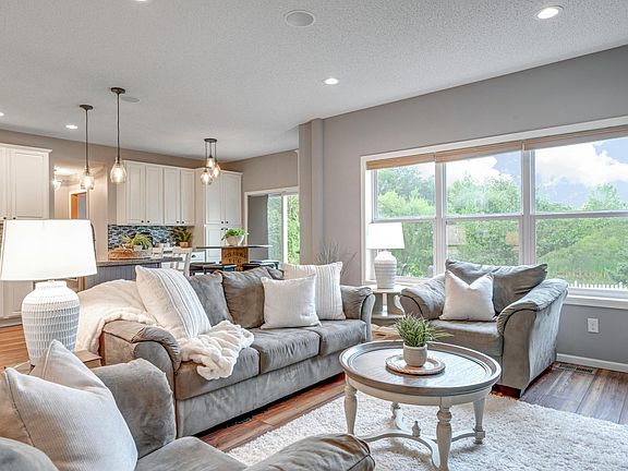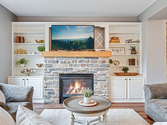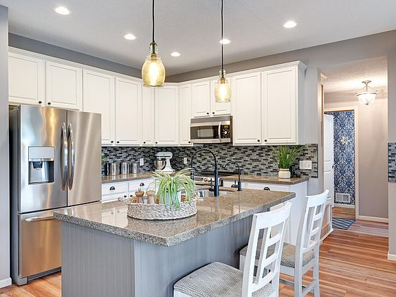 space for work and play. Relax in the generous master suite that is situated to take in the pond views,and unwind in the private soaking tub and walk-in shower. Host the perfect gameday party in the lowerlevel rec room and with custom bar! Enjoy the fully-fenced backyard with a lovely patio, fruit trees, and inground sprinklers in summer, and an excellent skating rink in the winter! With versatile spaces for multiple home offices, entertaining, craft rooms, etc., there is room for everyone to spread out here. Towne Lakes amenities are all within easy walking distance and include a pool, community room, dog park, easy access to Linwood and Linfield Parks, walking trails and more. Elk River or STMA schools. Close to everything with quick access to I94- this is a wonderful place to call home!