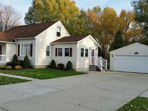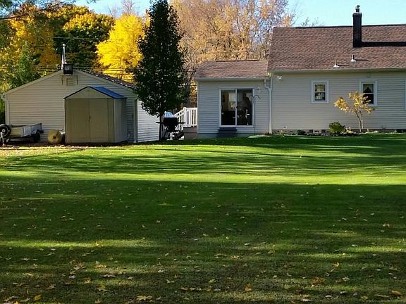 Adorable 3 bedroom home on nearly an acre lot close to Village and all conveniences. Meticulously maintained with ALL mechanics updated: roof 2013; within the last 10 years: furnace, H2O tank, central air, concrete driveway, new front porch, patio, updated bath, garage door, fully insulated walls, back up sump pump, new interior doors, half bath in basement. 2 bedrooms on 1st floor, 2nd floor=all 1 large bedroom. Hardwood floors in kitchen and dining, brand new rug in family room with tray ceiling and sliding door, leading to patio overlooking the beautifully maintained quaint back yard. Truly nothing to do BUT move right in!