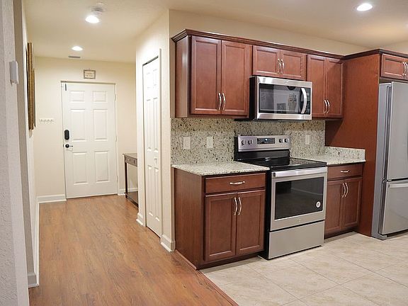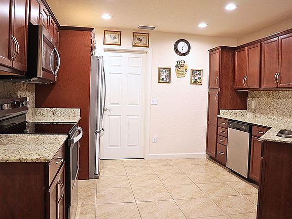 Granite countertopsOpen-concept designStainless-steel appliancesDouble-sink vanity