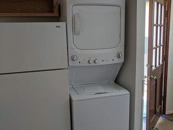 Small 2 bedroom ADU with small fenced in covered front patio area. Small stacked washer and dryer. Unit is located behind main house and not visable from the street. Cental San Diego location with freeway access close by but still quiet.
