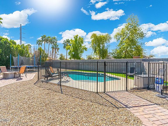 Welcome to Peoria Village! Beautiful 4 bed, 2 bath home on over 1/4 acre huge grass play yard, plus a fenced pool! Upgraded wood plank tile throughout, shaker cabinets, granite countertops, tile backsplash, Stainless appliances, plantation shutters on all windows, double sinks in both bathrooms, master bath includes garden tub, separate shower, private toilet room. Pool is less than 5 years old with 10 year warranty and has been professionally maintained. Home features soft water system. New water heater installed '22. Epoxy garage floor, custom shelving. Full irrigation system front and back. This home is beautifully upgraded and sits on the second largest lot in the neighborhood!