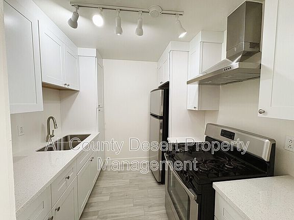 Welcome to Cathedral City! This updated 1 bedroom 1 bath is centrally located near grocery stores, shopping centers, and restaurants! The unit has hardwood laminate flooring throughout with new paint and new light fixtures. Stove and refrigerator included. Driveway parking in front and fenced backyard with shaded porch. Washer and dryer hookups. Front landscaping services included in the monthly rent. Tenant to pay all utilities.