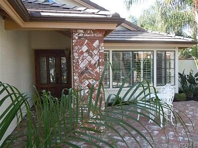 Beautiful home with numerous upgrades! Gorgeous palm trees line this corner lot.Family room with cozy fireplace.Elegant formal living and dining room. Kitchen has nice cabinets, Corian counters rec. lighting and newer appliances.Cozy breakfast area.Bathrooms have been remodeled with custom vanities, mirrors & cupboards, marble counter, sinks, toilets, decorative marble showers, thick paned shower doors, marble floors,fixtures, lighting and jetted bathtub in master bath. Lifetime shutters throughout. Crown molding in two bedrooms, office and family room. Decorative staircase. Beautiful triple glazed leaded oak front door and window above. Hardwood floors in hallway, office and family room. Beautiful brick courtyard and columns. Entertain your friends in a beautifully landscaped backyard that features a covered patio with lighted ceiling fans, tile flooring, and two fountains with lights This home is a sports lover's dream.RV Parking (10 x 48 feet) and a storage shed (8 1/2 x 10 feet) with cupboards, workbench, lighting and window. Epoxy paint on garage and shed floor. Plenty of storage cabinets in garage.Storage in the garage attic which features, flooring, lights and fold down stairs.Furnitures and some personal appliances for sale.Ask agent for details.