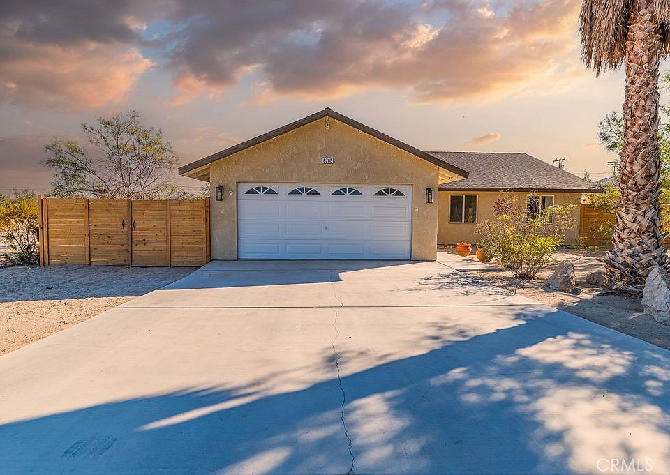 HUGE PRICE REDUCTION!! Your new home is here with this beautiful remodeled home in the Smoke Tree neighborhood of Twentynine Palms. This charming home is a 3 bedroom, 2 bath and is 1,294 square feet on just under a quarter acre of land. Upon pulling up you’re met with lush landscaping inside a wooden pony fence. The front entry opens to an open living room and open kitchen with a breakfast bar that's been beautifully upgraded. The kitchen has been updated with new paint, open shelving, hardware, and stainless steel appliances. Throughout the home there's new flooring, base boards, door trim, and paint. The main bathroom has been remodeled with a newly tiled shower, shiplap installation, and painted cabinets. The backyard has a custom built deck to enjoy those desert sunsets while also having wood privacy fencing surrounding the property. You’ll save on utility costs with hooked up solar as well as being on natural gas. Close to many amenities and conveniences for shopping and dining. Also just a short drive away to downtown 29 Palms with Project Phoenix with all their new shops and dining options as well. You’re also very close to the entrance to the Joshua Tree National Park for hiking, climbing, exploring, and more.