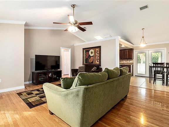 This charming, well maintained three bedroom 2 bathroom home features a beautiful upgraded kitchen equipped with stainless steel appliances, granite countertops, lots of prep and counter space, a sky light and a view to the back yard. The master bedroom features a walk in closet as well as a large open shower. Every bedroom is finished with crown modeling and real hardwood floors. The over-sized indoor laundry room has ample storage with access from the garage. This home has a large flat back yard, great for play and the neighborhood is family friendly.