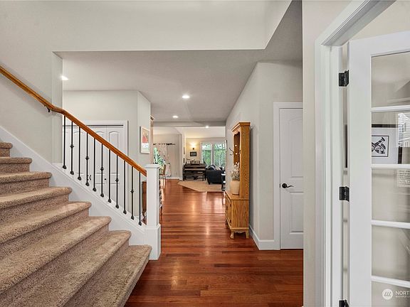 Welcome to this 4 bed, 3 bath home offering luxury & convenience w/primary bedroom on main floor featuring an attached bath, walk-in closet, & laundry. Solar panels ensure energy efficiency, while the new back deck is perfect for outdoor entertaining. A second set of washer/dryer on the second floor adds convenience. Enjoy year-round comfort w/newer heat pump & gas furnace. The 3-car garage & ample storage provide practicality. Inside wood floors, French doors, and a grand staircase create a refined atmosphere. The open kitchen features stainless steel appliances, granite countertops, & a breakfast bar island. Bright, spacious bedrooms, nearby playground, and Issaquah Schools make this home a perfect blend of luxury and comfort.