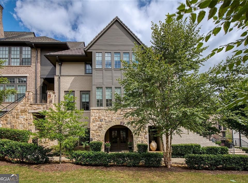 Luxury, Location & Convenience. Welcome to 6766 Cadence Boulevard, nestled in the sought-after Ashton Woods development of Aria North. This custom-designed, wide end unit showcases the coveted Ashton Woods Signature Domingo floorplan, enhanced with a covered front entrance, elongated driveway, extra end-unit windows, distinctive architectural details, a finished terrace level, and peaceful views of the front courtyard. Offering 3,170 square feet, this residence is a rare gem-delivering the feel of a single-family home with the ease of low-maintenance living. Impeccably maintained, spacious, and thoughtfully designed, it's the perfect balance of comfort and sophistication. Inside, discover 3 bedrooms, 3 full bathrooms, and 1 half bath. The gourmet chef's kitchen features stunning stone countertops, an upgraded 6-burner range, premium KitchenAid stainless steel appliances, a pot filler, striking pendant lighting, and generous barstool seating-perfect for entertaining. The adjacent dining room, complete with an upgraded chandelier, sets the stage for memorable dinner parties. The great room offers a custom-designed fireplace flanked by built-in cabinetry and is bathed in natural light. Step outside to the covered back deck, an ideal spot to savor the upcoming crisp fall evenings. Throughout the home, upgraded hardwood floors and lighting fixtures provide a consistent sense of style and quality. Upstairs, the inviting owner's suite is a true retreat. The spa-like bathroom boasts dual vanities, an oversized upgraded shower with built-in bench, and a soaking tub. A second upper-level bedroom also enjoys its own private en-suite bath. Custom Restoration Hardware shades and blinds are installed throughout the home, and the entire property is wired for speakers + smart-home integration. The finished terrace level reveals a hidden third bedroom and full bath, plus an additional gathering space with a brick accent wall, custom built-in bar, and cabinetry. The spacious garage-equipped with an electric car charging station-is accessed via a private alley, while the extended driveway offers rare additional parking. Located just minutes from GA-400 and with close proximity to I-285, this home offers unmatched convenience. Aria North residents enjoy exceptional amenities, including two pools, a fitness center, clubhouse, club room, and a 12-acre park. You'll also love strolling to the shops and restaurants in Aria Village. This is your opportunity to live in true luxury-schedule your private showing today!