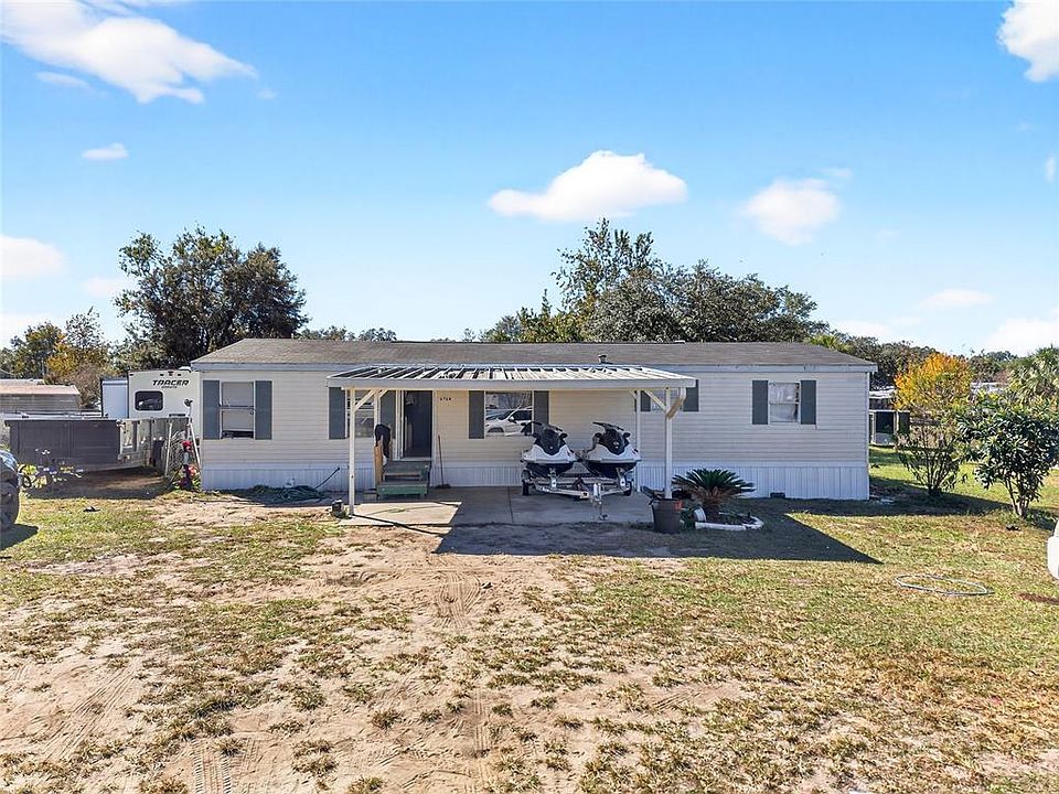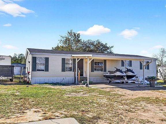3 Bedroom with an addditional 1 FLex room/ Mother in law room with private entrance off back porch- fenced on 3 sides - Several citrus trees in the back yard- NO HOA - NO FLOOD ZONE- Move in Ready ! Laundry Room inside- Master bedroom has walk in closet- Wooden deck in back with metal roof -Off of a Paved road - Blue storage shed with electric included. 2025: OOF---2025: SKIRTING around bottom of home --2025: AIR CONDITIONER---2025: WATER HEATER---2025: Luxury Vinyl Plank Flooring --2024: HOME RE-LEVELED & ANCHORED