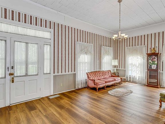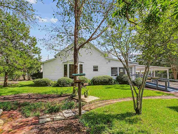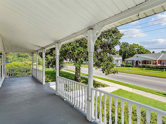One-of-a-kind Gothic carpenter inspired home constructed of heart pine and deeply steeped in Milton history. The Mints-Merchant House, circa 1890, is well-maintained, and a short walk to the Downtown River-walk. With 3,233 sf, 3 living areas, 2 dining spaces, 4 BD & 3 BA: this 2-story home has Gothic inspired columns and roof pitches, elevated over an inviting front porch perfect for parade watching. Enter the home through the original wood front door adorned by side lights and transom window, which beckons you into the grand living area. Cased floor to ceiling windows, beadboard, chair railings, 12’ ceilings, and original to period light fixtures accurately convey the classic parlor room which flows into the formal dining room. The spacious kitchen features tall wood cabinetry, spacious counters/drawers, open face shelving and a custom-made rack for wine glasses. There is plenty of room in the kitchen for a dinette or island with seating. The downstairs master ensuite has 12’ ceilings, master bath, and 2 cedar lined closets. Two additional downstairs bedrooms have floor to ceiling picture windows and huge closets. They share a full bath with shower that is accessible to guests. Upstairs is a large living room area, spacious bedroom with 2 cedar lined closets, and a large bathroom with dual vanity and tub/shower combo. There is LVP flooring throughout entire home installed in 2020. The main corridor opens into a casual family room with side entryway door to the 2-car carport and a back door with handicap ramp. The upstairs HVAC was replaced in 2022, downstairs HVAC in 2011, roof in 2017. For peace of mind, there is a natural gas home generator. The .65-acre lot has a fenced back yard, sprinkler system (well), and 646 sf detached concrete block building with 2 car garage, storage rooms, and an insulated workshop with an office. Rarely is such a historic home offered for sale, so take a look for yourself, and let your history be the next written in this home's legacy.