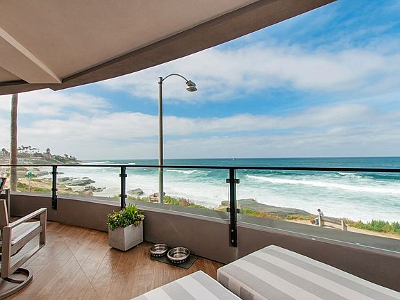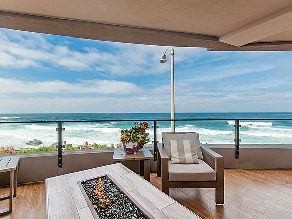 Recently built waterfront luxury condo with panoramic views of sunsets, sand, coastline, & world class swimming & surfing at La Jolla's iconic Windansea Beach. A covered & private wraparound deck seamlessly extends your living space. 3 beds, 3 full baths, living room w/ e-fireplace, dining area, kitchen w/ premium appliances & island w/ seating, & AC. Private 2 car garage & separate private storage room. Bldg has gated entry, elevator, solar for all units, outdoor shower, & waterfront lounge w/ firepit.
