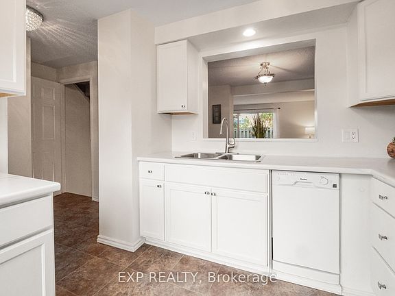 BRIGHT AND SPACIOUS TOWNHOUSE CONDO IN NORTH NIAGARA FALLS offering quick access to the highway, schools, shopping, and every convenience you need. This well maintained home includes your own parking space right in front and a welcoming main floor with a refreshed white kitchen featuring ample cabinetry, counter space, and a large window that fills the room with natural light. The open concept living and dining area is finished with laminate floors and highlighted by a triple wide patio door that opens on both sides, leading to a private enclosed backyard, along with a convenient two piece bathroom. Upstairs you will find two oversized bedrooms that function as dual primary suites, with one previously designed as two bedrooms and easily converted back, making it ideal for families or those who want a combined bedroom and office space. Both bedrooms are bright with generous closets and laminate flooring, and a four piece bathroom with tile surround completes the upper level. The finished basement offers a large recreation room, laundry area, and plenty of storage, while the condo fee covers water, parking, and building insurance, making this an excellent choice for first time buyers, downsizers, or investors looking for an affordable home in a great location. Adding to the convenience, this property is situated on the bus route with direct service to both Niagara College and Brock University.