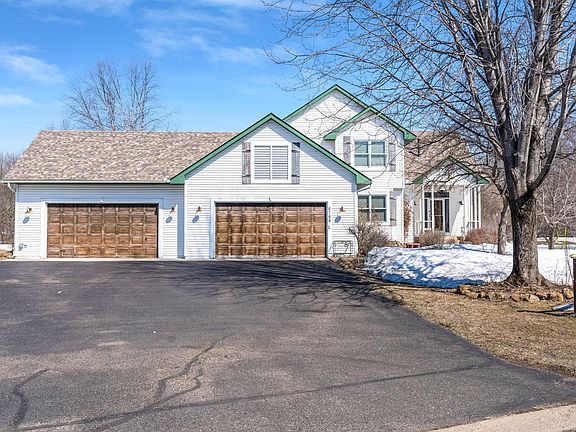 Picture perfect two story on a beautiful wooded acre lot backing up to the Sunrise River! This home has many updates throughout and offers an open floor plan, great for entertaining, and an abundance of natural light! The spacious kitchen has a center island, pantry and stainless steel appliances, inviting dining and living room with built-ins and gas fireplace and maintenance free deck overlooking the tranquil nature views. The upper level has 3 spacious bedrooms including owners suite with private bath and walk-in closet. The lower level offers a spacious family room with a rustic feel and walks out to patio and wooded backyard with fire pit. The beautifully landscaped yard is adorned with perennial gardens and has an in-ground irrigation system. Soak in the serenity watching the deer, the wild life and river views. Lots of storage here too, with a conveniently located mudroom and large four car garage that is set up for future heating/cooling system and 50 amp receptacle for an RV.