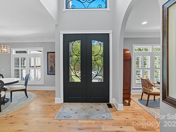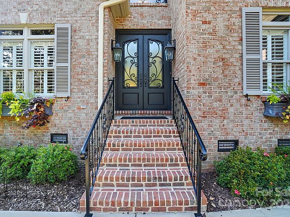 BACK ON THE MARKET AT NO FAULT OF THE SELLER! Rare All-Brick Cul-de-Sac Home in 28226 – Nearly 3,000 Sq Ft. Set on a private road with only seven all-brick homes, this 4-bedroom, 3.5-bath residence offers timeless curb appeal, extensive updates, and a quiet cul-de-sac setting. The main level features whitewashed solid hardwood floors, a formal dining room and a front flex room that can serve as a living room or office. A two-story foyer with wrought iron double doors, soaring ceilings and a catwalk overlook with wrought iron railing creates an impressive entry. The primary suite on the main includes barn door entry and a spa-like bath with 12x25 matte marble tile, freestanding soaking tub, marble-accented shower surround with hexagon tile floor and a custom walk-in closet. The updated half bath offers a soapstone countertop and freestanding vanity. The kitchen renovation added a Shaw apron sink, granite countertops, tile backsplash, Thermador 4-burner oven and dishwasher, under-cabinet lighting, and upper glass-front cabinets with interior lighting, as well as an eat-in breakfast area with vaulted ceiling. The family room boasts a tray ceiling, marble fireplace with gas logs and louver-door storage with shelving. Ceiling fans are found throughout the bedrooms, flex room, and family room. Plantation shutters and heavy crown molding complete the main level.