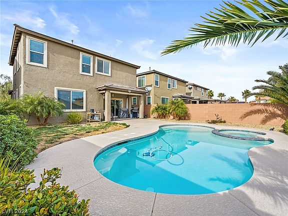 Luxurious Centennial Hills Retreat with Custom Pool and Spa! Experience the elegance in Solano Springs. This home features an airy open-concept layout adorned with fresh white and soft grey hues. The gourmet kitchen boasts a 10ft granite island, perfect for hosting holiday festivities. The main level includes a convenient half bath, while the upper floor offers 3 bedrooms, 2.5 baths, and a spacious loft. The primary suite is a sanctuary with a walk-in closet, dual sinks with granite countertops, a walk-in shower, and a soaking tub with granite accents. The loft provides a cozy ambiance, while the 2nd and 3rd bedrooms offer comfort with ceiling fans and plush carpeting. Your private backyard paradise comes complete with a custom pool and spa, designed for relaxation and entertainment. It is the perfect outdoor gathering spot. This property boasts a generous pool-sized lot, and a paver driveway. Don't miss your chance to make this beauty your new home!